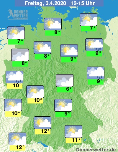 Am frühen Nachmittag fällt vor allem über der Landesmitte und im Osten gebietsweise etwas Regen, oder es gehen örtliche Schauer nieder. Sonst gibt es eine Mischung aus Sonne und Wolken.