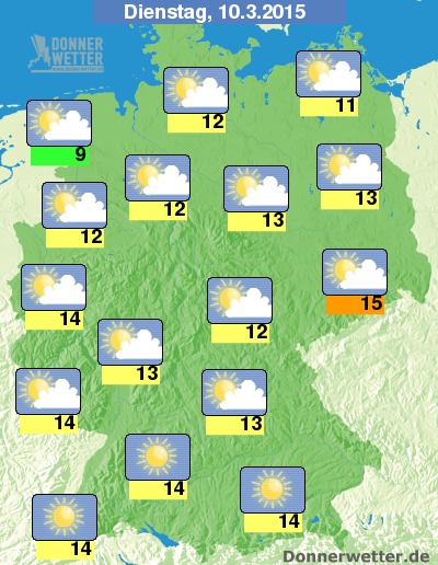 Und auch der Dienstag enttäuscht uns nicht. Eine regenfreier Mix aus Sonne und Wolken, dazu Höchstwerte um 9 Grad C in Ostfriesland und bis 15 Grad C in der sächsischen Schweiz. Allerdings besteht ein gewisses Schauerrisiko ganz im Westen. Die Lage ist hier noch unsicher.