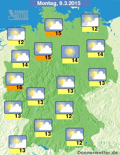 Der Montag spendiert uns Sonne, harmlose Wolken und milde Temperaturen um 12 Grad C an der Ostseeküste und um 16 Grad C im Westen. Im Westen kann es aber zeitweise auch wolkig sein.