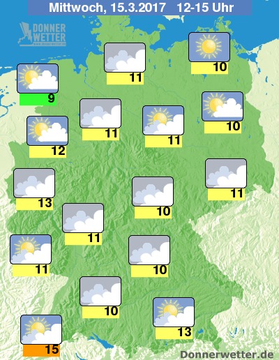 Die Temperaturen erreichen an der Nordsee um 9 Grad C und am Oberrhein um 15 Grad C.