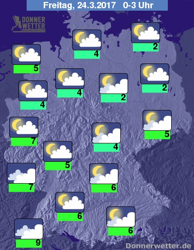 In der Nacht reißt der Himmel dann meist schon wieder auf und fast landesweit funkeln die Sterne. Die Tiefsttemperaturen fallen im Nordosten auf Werte um den Gefrierpunkt, im Südwesten liegen die Werte deutlich darüber.