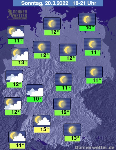Heute Abend halten sich über dem Südwesten, Westen bis in den Nordwesten der Republik oft einige, hier und da auch dichte Wolken, Regen fällt dabei aber keiner mehr. Im übrigen Bundesgebiet ist der Himmel hingegen sternenklar, dazu bleibt es trocken. Die Temperatur liegt bei 10 Grad in Wiesbaden und bis 15 Grad in Stuttgart.