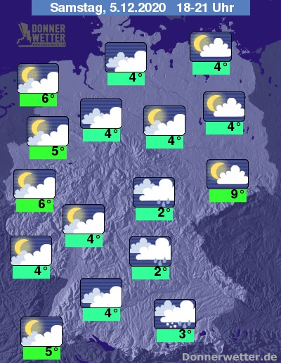 Am Abend dominiert am Himmel wechselnde oder starke Bewölkung, bis auf gebietsweise Regen-, Schneeregen- oder Schneeschauer im Südosten Deutschlands bleibt es aber weitgehend trocken.
