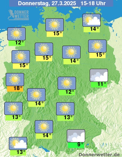 Am Donnerstagnachmittag zeigt sich der Himmel im äußersten Südosten sowie am Alpenrand stark bewölkt, es bleibt aber meist trocken. In den übrigen Landesteilen überwiegt sonniges Märzwetter.