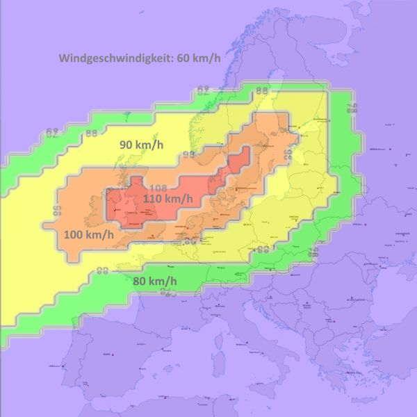 Die nachfolgende Karte zeigt die zu erwartenden Windgeschwindigkeiten in Europa für den 19.11.2015 (00:00 bis 06:00 Uhr):