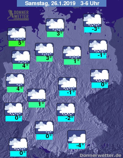 Die Temperaturen liegen vor Beginn der abendlichen Dämmerung bei -4 Grad im Nordosten und +1 Grad im Rhein-Main-Gebiet. In den Ballungsgebieten des Westens und an der Ems können bereits schon +3 Grad erreicht werden.