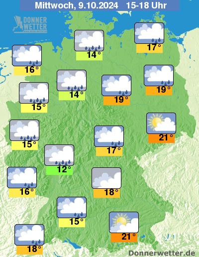 In der Nacht zum Donnerstag breiten sich von Westen und Südwesten teils kräftige und anhaltende Niederschläge nordwärts aus. Lokal besteht Unwettergefahr! Vom Süden bis nach Sachsen bleibt es bei wechselnder Bewölkung weitgehend trocken.