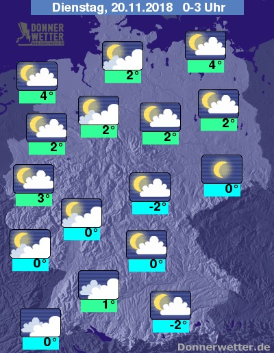 In der Nacht auf Dienstag zeigt sich der Himmel überwiegend bedeckt oder aufgelockert bewölkt, mit neuen Niederschlägen ist aber nicht zu rechnen.