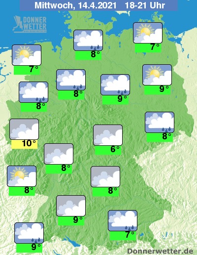 Heute Abend ist es oft stark bewölkt, gebietsweise heitert es aber auch vorübergehend auf, es können sich weiterhin örtliche Schauer, zum Teil mit Schnee oder Hagel durchsetzt, bilden. Die Temperatur liegt bei 6 Grad in Oberfranken und bis zu 10 Grad im Rheinland.