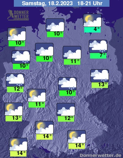 In der Nacht zum Sonntag ist der Himmel im Süden oft aufgelockert, teils auch stark bewölkt, dazu bleibt es hier häufig trocken. Nördlich des Mains ziehen dagegen dichte Wolken durch und es bilden sich wiederholt, teils kräftige Schauer. Die Temperatur sinkt auf 11 Grad im Rheinland und bis 2 Grad an der Müritz.