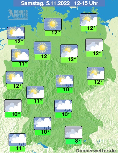 Heute Nachmittag zeigen sich über der Nordhälfte oft heitere, teils sogar sonnige Abschnitte, im Süden ist es jedoch meistens stark, teils aufgelockert bewölkt und es bilden sich hier einzelne Schauer. Im übrigen Bundesgebiet bleibt es weitgehend trocken. Die Temperatur liegt bei 8 Grad in Berchtesgaden und bis 12 Grad in Hannover.
