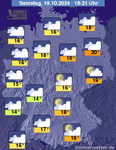 Heute Abend zeigt sich der Himmel über dem Land verbreitet stark, teilweise auch aufgelockert bewölkt. Vom Rheinland bis an die Nordsee ist hier und da auch etwas Regen möglich, sonst bleibt es aber weitgehend trocken. Die Temperatur liegt bei 14 Grad in Saarbrücken und bis 20 Grad in Berlin.