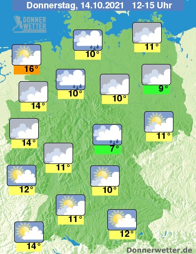 Heute Nachmittag zeigt sich das Wetter im Süden meist heiter bis wechselnd bewölkt. Weiter nach Norden hin ist es dagegen überwiegend stark bewölkt oder bedeckt, Auflockerungen sind nur lokal möglich. Es bilden sich jedoch auch nur vereinzelt Schauer, oft bleibt es auch trocken. Die Temperatur liegt bei 7 Grad im Grabfeld und bis 16 Grad im nördlichen Emsland.