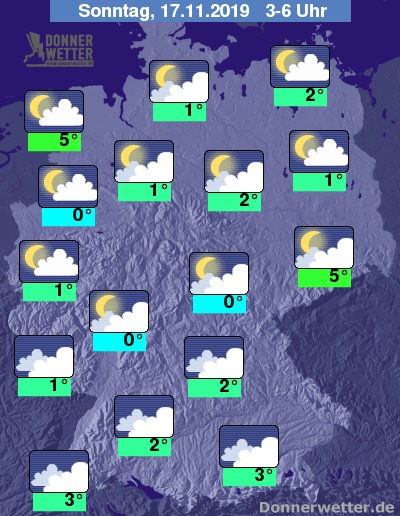 Der Sonntag zeigt sich das Wetter im Norden und Osten meist trüb, Auflockerungen sind allerdings möglich und zudem bleibt es hier trocken. Im übrigen Land ziehen verbreitet dichte Wolken durch, dabei fällt gebietsweise Regen. Zum Teil mischt sich in die Niederschläge auch Schneeregen oder Schnee. Die Temperatur steigt auf 4 Grad im Saargau und bis 15 Grad in der Lausitz.