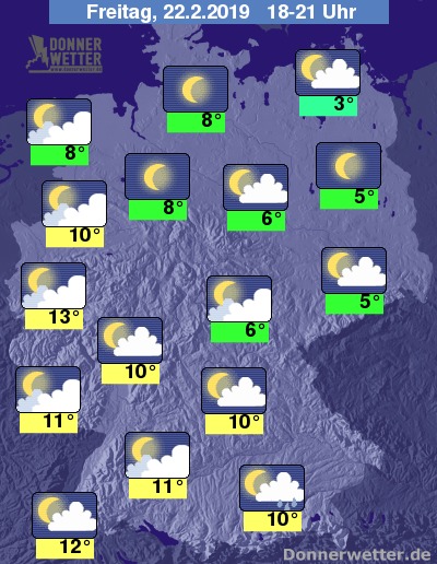 Die Temperaturen bewegen sich vor Dämmerungsbeginn noch bei 3 Grad in Teilen Mecklenburg-Vorpommerns und 13 Grad in der Kölner Bucht.