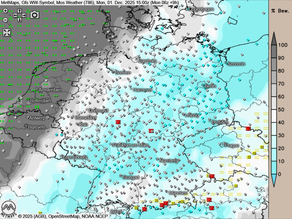 Hier hat der erste Dezembernachmittag Regen im Gepäck!