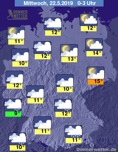 In der Nacht zeigt sich der Himmel über weiten Teilen des Landes bedeckt, lockere oder aufgelockerte Bewölkung beschränkt sich meist auf das Nordseeküstenumfeld sowie entlang der Oder. An der Weser und in der Südhälfte muss in den kommenden Stunden weiterhin mit Niederschlägen gerechnet werden, am Alpenrand regnet es zunächst auch noch ergiebiger.