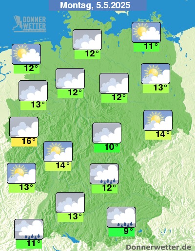 Höchstwerte am Montag um 9 bis 16 Grad.