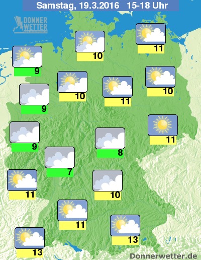 Heute Nachmittag ist es im Norden, im Nordosten, im Osten und im äußeren Süden Deutschlands häufig heiter oder noch aufgelockert bewölkt, dabei bleibt es trocken, sonst ziehen hingegen oft viele bis dichte Wolken durch, dazu bleibt es jedoch weitgehend trocken. Die Temperatur steigt auf 7 Grad am Westerwald und bis 13 Grad am Bodensee.