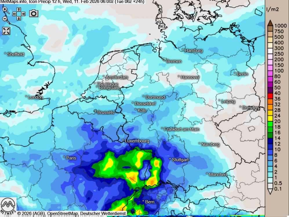 Am Dienstag kann sich im Osten und Südosten zunächst hartnäckiger Nebel oder Hochnebel halten, nachmittags zeigt sich der Himmel hier dann verbreitet heiter und es bleibt trocken. Sonst ist es am Dienstag überwiegend stark bewölkt, dabei fällt von Südwesten Regen, der im weiteren Verlauf auch die Mitte und den Nordwesten erreicht.