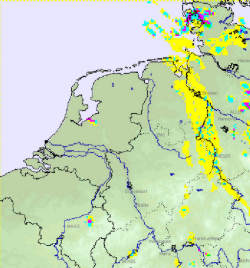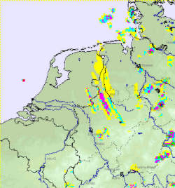 Der Radarfilm: Am 19. Juli 2005 tauchte auf den Radarbildern über den Niederlanden ein Regenband auf, das mit der Strömung nach Deutschland zog. Und so sagte auch Donnerwetter.de zum Beispiel in den Wettervorhersagen für den Norddeutschen Rundfunk (u.a. NDR 2, NDR-Info) für den Nachmittag Schauer über Niedersachsen vorher. Doch: Aus dem Schauergebiet, das sich über hunderte Kilometer erstreckte, fiel kein Regen! Der Radarfilm