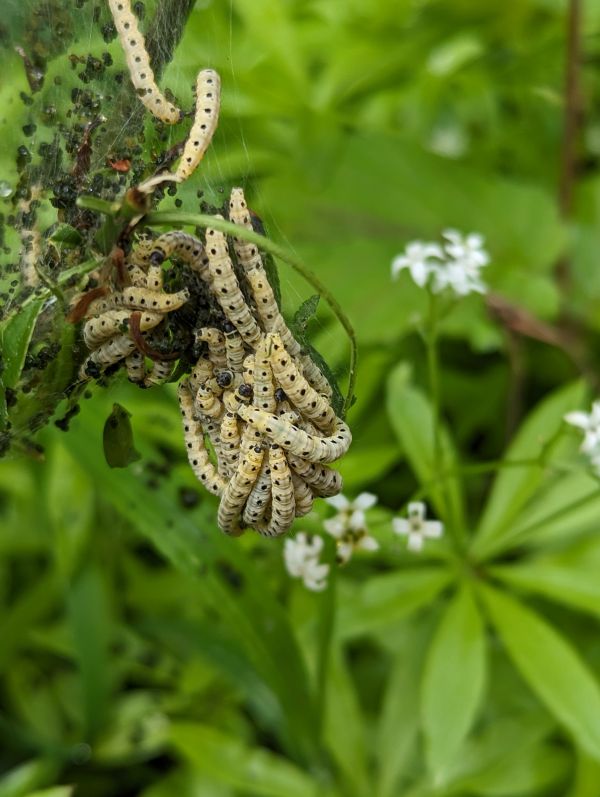 Aktuell ist aber noch ein anderes gepunktetes Insekt unterwegs, welches es mit unseren Pflanzen leider weniger gut meint: Die Gespinstmotte.