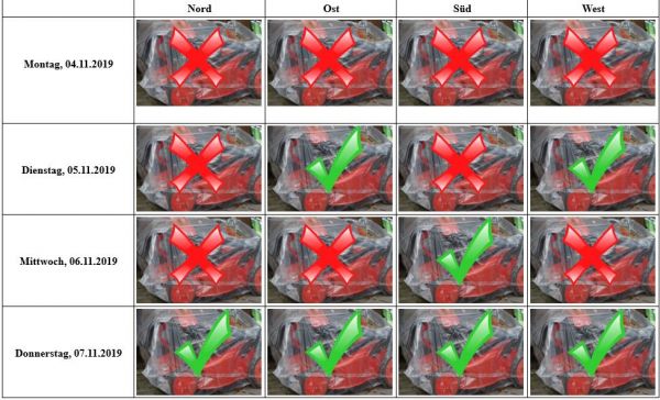 Besonders der Montag sollte doch praktisch im gesamten Land nass werden, am Dienstag bleibt es voraussichtlich über der breiten Landesmitte trocken, während es am Mittwoch nur im Süden weitgehend trocken bleibt.