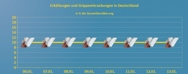 Mit Krankenzahlen bis 10% bis zum Ende der Woche bleibt der Krankenstand, für diese Jahreszeit gesehen, eher moderat.