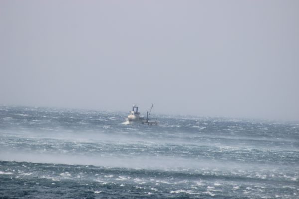 Abb.: Ein Schiff im Sturm auf dem Mittelmeer bei Samandag/Süden Türkei Hatay
