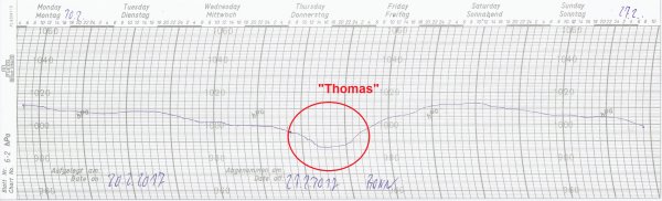 Ausgerechnet an Weiberdonnerstag (23.02.) gab es dann sehr turbulentes Wetter in Deutschland: Orkantief „Thomas“ zog von den Britischen Inseln nach Schleswig-Holstein. Es trieb neben orkanartigen Böen von zum Teil über 100 km/h, die vor allem im Westen sowie über der Mitte erreicht wurden und einige Schäden hinterließen, auch Regenwolken vor sich her. Auf dem Brocken im Harz gab es Windgeschwindigkeiten von bis zu 156 km/h.