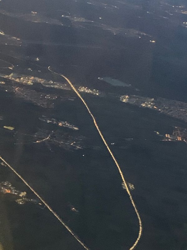 Sie rätseln bei dem oben gezeigten Bild? Es wurde aus dem Flugzeug aufgenommen, Landeanflug auf den Frankfurter Flughafen in der Abenddämmerung. Über zig Autobahnen hinweg schlängeln sich unzählige gelbe, weiße und rote Lichter, die sich kaum oder nur wenig bewegen.