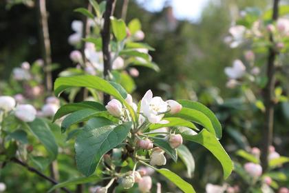 Auf dem Bild ist die Apfelblüte zu sehen, die durch Spätfröste stark gefährdet ist.