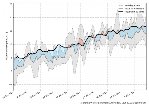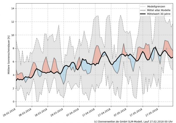 Unsere aktuellen Langfristprognosen für Lufttemperatur, Sonnenscheindauer und Niederschlagshöhe.