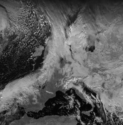 Im Einflussbereich des Hochs 'Dirk' lösen sich die Wolken immer mehr auf. In weiten Teilen von Polen, Weißrussland, Westrussland und des Baltikums ist es gering bewölkt oder wolkenlos. Nur durch den Schnee erscheinen die Landoberflächen auf dem Satellitenbild dennoch weiß. In Deutschland hielt sich am Freitag überwiegend noch dichte Bewölkung, hier und da konnte sie aber auch schon auflockern. Von Island über Großbritannien und die Bretagne bis nach Portugal erstreckt sich dagegen das Wolkenband des Ausläufers eines Tiefs bei Island. Er nähert sich Deutschland nur langsam.