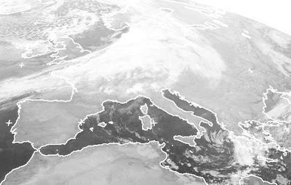 Auf dem Satellitenbild von Samstag früh sind dichte Wolken über Mitteleuropa gut zu erkennen. Sie gehören zu einem Sturmtief westlich von Norwegen, und ziehen heute von West nach Ost über uns hinweg. Im Mittelmeerraum, sowie in Spanien und Portugal ist der Himmel unter Hochdruckeinfluss fast wolkenfrei, und nur ein kleines Gewittertief über Griechenland sorgt hier für teils kräftige Schauer und Gewitter. (Bildquelle: NERC Satellite Receiving Station, Dundee University, Scotland, http://www.sat.dundee.ac.uk/)