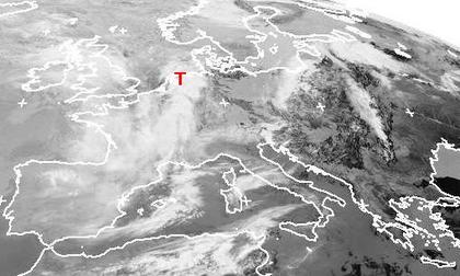 Auf dem Satellitenbild von Mittwoch früh sind über Westeuropa dichte zu erkennen. Ein Wolkenband erstreckt sich dabei von der Nordsee über Westdeutschland und Benelux bis nach Südfrankreich. Es gehört zu einem kleinen Tief, dass heute den Norden Deutschland von West nach Ost überquert und dabei für teils kräftigen Regen sorgt. (Bildquelle: NERC Satellite Receiving Station, Dundee University, Scotland, http://www.sat.dundee.ac.uk/)