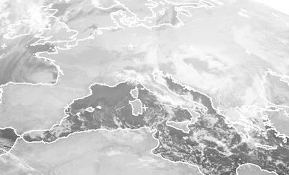 Über Südosteuropa und dem Mittelmeerraum halten sich viele Regenwolken, sie gehören einem Höhentief über dem Adriatischen Meer, einige Schauerwolken sind entlang der afrikanischen Mittelmeerküste zu erkennen. Von der Iberischen Halbinsel bis nach Skandinavien bringt Hoch „Bernhilde“ ruhiges Wetter, gebietsweise halten sich jedoch hochnebelartige Wolkenfelder. (Bildquelle: NERC Satellite Receiving Station, Dundee University, Scotland, http://www.sat.dundee.ac.uk/)