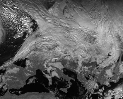 Die Nordhälfte Europas liegt zu großen Teilen unter dichten Wolken, die auch Regen oder Schnee bringen. Tief 'Dieter' liegt mit seinem Zentrum über dem Nordatlantik, Tief 'Christian' liegt mit seinem Zentrum über Karelien. Im Südwesten Europas sorgt Hoch 'Agnes' für freundliches Wetter.