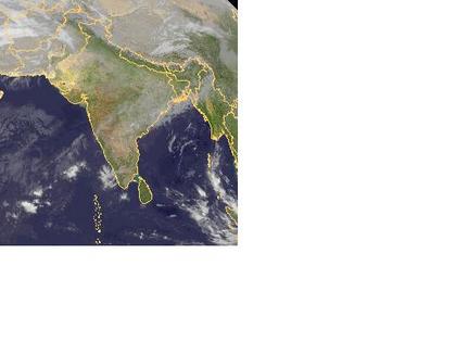 Über Indien sind auf dem Satellitenbild von Donnerstag früh nur einige hohe Schleierwolken, sowie ein paar Schauerwolken an der Südwestküste zu erkennen. Sonst ist der Himmel nahezu wolkenfrei.