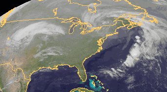 Ein kräftiges Tief liegt über dem Osten Kanadas, wo es, ebenso wie im Nordosten der USA, noch teils starken Regen mit kräftigem Wind bringt. Es schwächt sich jedoch allmählich ab. Ein neues Tief bildet sich mit seinen Wolken jedoch schon weiter im Westen der USA, an den Rocky Mountains. Es bringt am Sonntag teils kräftigen und teils auch Schneefall in den amerikanischen Westen.