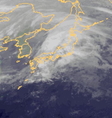 Ein kräftiges Tief zieht derzeit von Südwest nach Nordost über Japan hinweg. Dabei sorgt es für teils sehr ergiebigen Regen. Zum Teil, vor allem an der Südküste, ist es auch sehr windig.