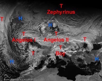 Auf dem heutigen Satellitenbild sind über einem Großteil Europas Tiefdruckgebiete zu sehen, die im Süden, vor allem über Italien, aber auch über Spanien für teils kräftige Schauer oder Gewitter sorgen. Auch über den Britischen Inseln und in Westeuropa fällt verbreitet Regen. Im Norden und Nordosten bis zum Schwarzen Meer fällt der Niederschlag meist als Schnee. Deutlich freundlicher und trocken, häufig auch sehr sonnig ist es vom südlichen Italien bis zur Ägäis und im kompletten östlichen Mittelmeerraum.
