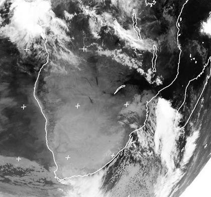 Die Kaltfront eines Tiefs, das in den vergangenen Tagen in Südafrika Regenfälle brachte ist nach Osten abgezogen. Sie bringt aber noch kräftige Schauer und Gewitter in der Straße von Mozambik. Über weiten Teilen des südlichen Kontinents ist nun kühle und trockene Luft eingeströmt. Man findet kaum noch Wolken. Die tropischen Schauer und Gewitter haben sich nach Norden zurück gezogen. (Bildquelle: NERC Satellite Receiving Station, Dundee University, Scotland, http://www.sat.dundee.ac.uk/)