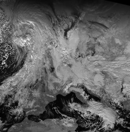 Das Hoch 'Dirk' sorgt für allem über Nordosteuropa für teils wolkenfreie Gebiete, die aber durch die helle Schneedecke kaum auffallen. Auch in Mecklenburg findet man eine Wolkenlücke. Überwiegend ist es im Einflussbereich des Hochs jedoch dicht bewölkt. Über dem Atlantik sorgt dagegen ein mächtiges Islandtief für viele Wolken. Ein Ausläufer zieht am Samstag nach Westdeutschland. Ein kleineres Tief erkennt man über Süditalien, es sorgt aber in Süditalien und Griechenland für teils kräftigen Regen und starken Wind.