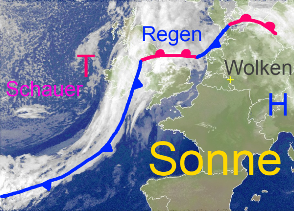 Während der Süden von Deutschland mit längeren sonnigen Phasen schon von dem Hoch über den Alpen profitiert, streifen über den Norden noch Fronten mit etwas Regen und Sprühregen hinweg.