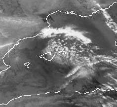 Ein kleines Tief im Mittelmeer sorgt für einige Schauer, teils auch Gewitter auf den Balearen. Auf dem Satellitenbild von Freitag früh sind die einzelnen kleinen Schauer- und Gewitterzellen über dem Mittelmeer gut zu erkennen. (Bildquelle: NERC Satellite Receiving Station, Dundee University, Scotland, http://www.sat.dundee.ac.uk/)