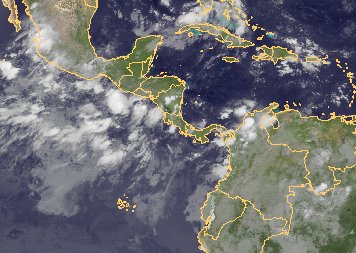 Über Mittelamerika haben sich jahreszeitlich bedingt kräftige Schauer und Gewitter entwickelt.