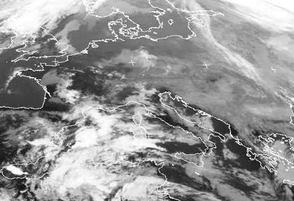 Über dem westlichen Mittelmeer halten sich mehrere Schauerwolken, sie gehören dem kleinen Tief 'Rolf', das heute den Mittelmeerraum von West nach Ost überquert und für teils kräftigen Regen von den Balearen bis nach Sizilien sowie in Nordafrika sorgt.
