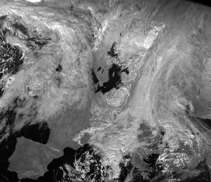 Das heutige Satellitenfoto zeigt vielfach dichte Wolken vom zentralen Mittelmeer, nach Osteuropa und bis in den Nordosten Europas hinein. Hierbei fällt besonders in Italien verbreitet Regen, der teils länger anhält. Ein weiteres Tief sorgt auch über Großbritanien für meist dichte Wolken und zahlreiche Niederschläge.