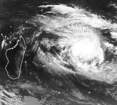 Über dem Indischen Ozean wirbelt sich der Taifun 'Isang' auf. Er verlagert sich unter Verstärkung nach Süden und kann morgen die kleine Insel Rodrigues erreichen. Nahe seinem Auge werden dabei 100, in Böen 130 km/h erwartet.